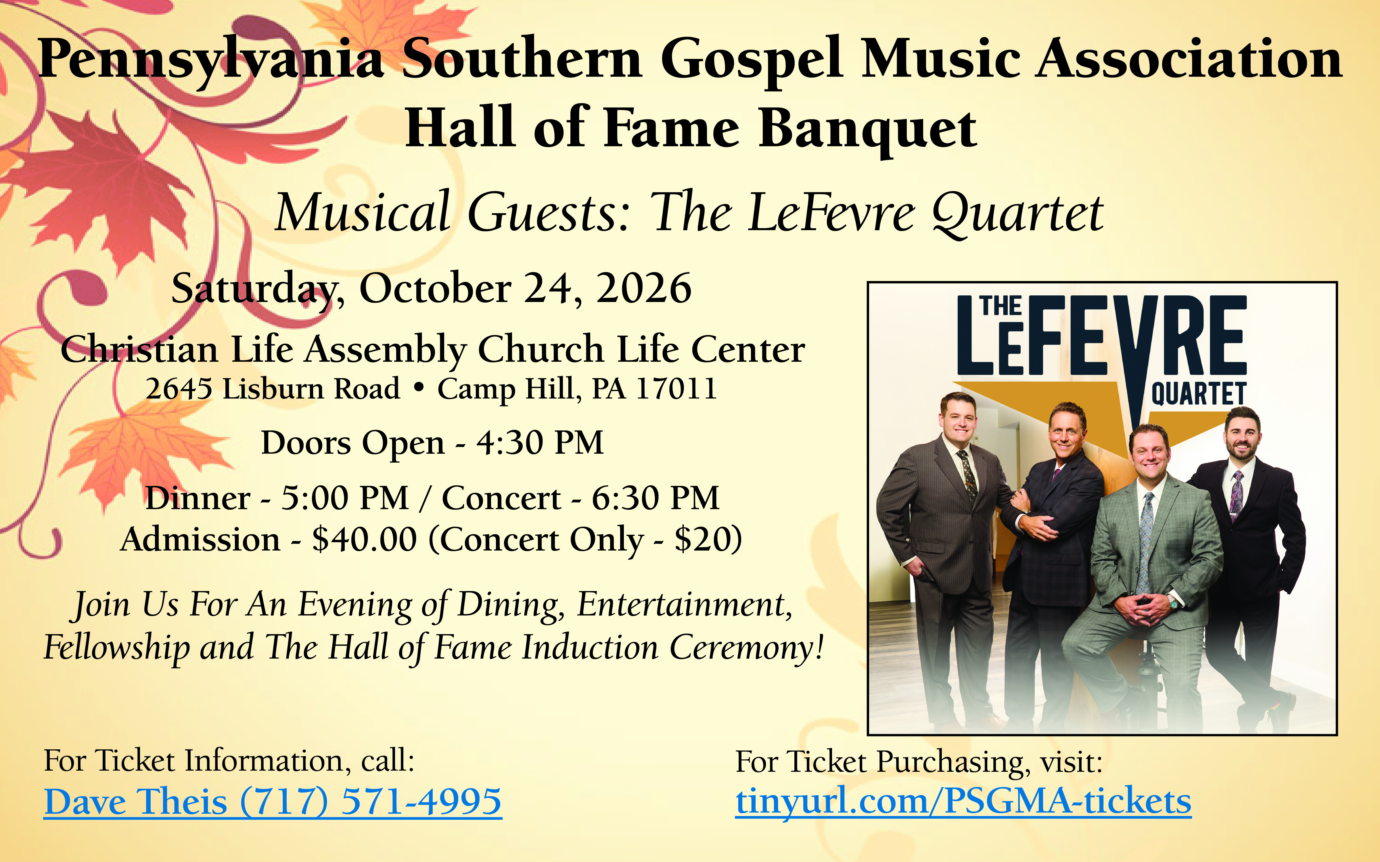 The tickets will be held for you at the door to pick up the night of the banquet and concert... Any questions, call (717) 571-4995.